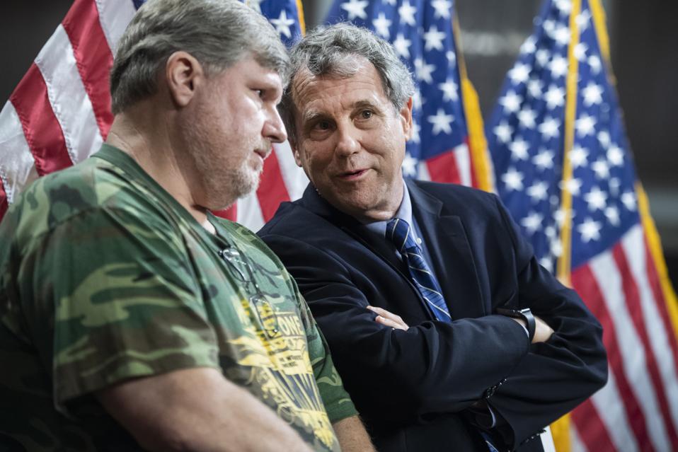 UNITED STATES – OCTOBER 16: Sen. Sherrod Brown, D-Ohio, speaks to a member of the United Mine … [+]