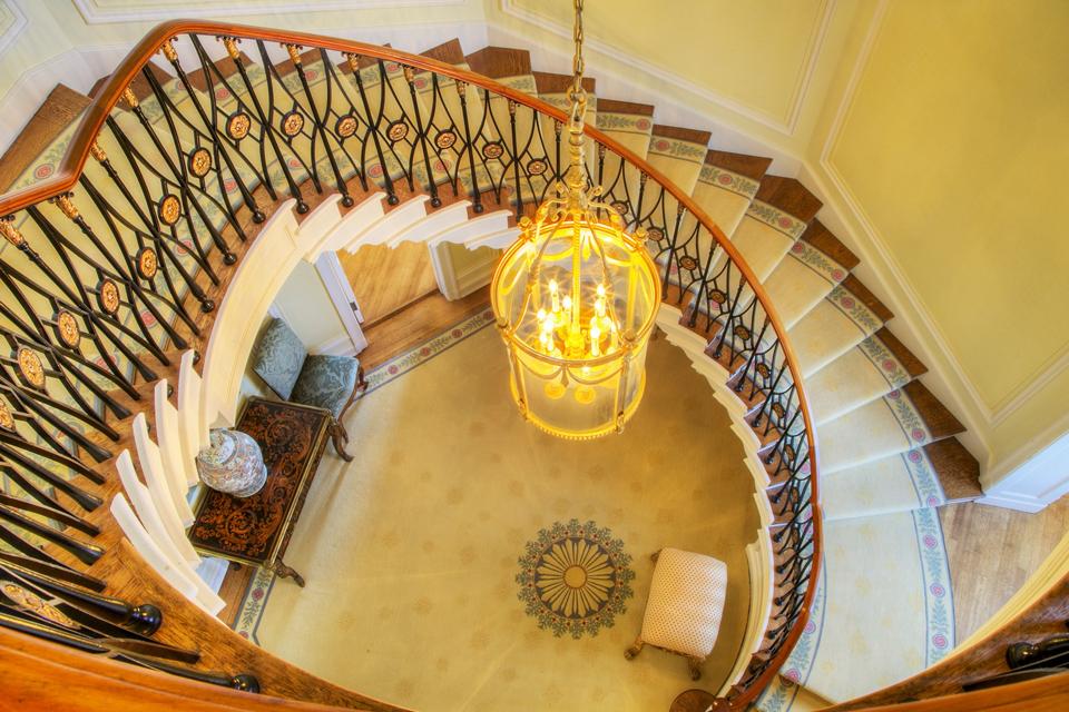 The home features a spiral staircase.