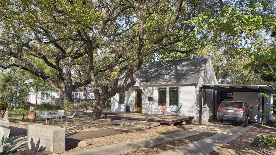 When the owners of this project sought to return to the simple, curated life afforded in Austin, Texas, they found a lovely but small 900-square-foot cottage built in 1936 to call home. The original home was crowded by aged and leaning live oaks and faced limited development possibilities because of an underground utility easement. But the team’s approach, centered on an understanding of the landscape, delivered a 1,000-square-foot addition that blurs the line between indoor and outdoor spaces.