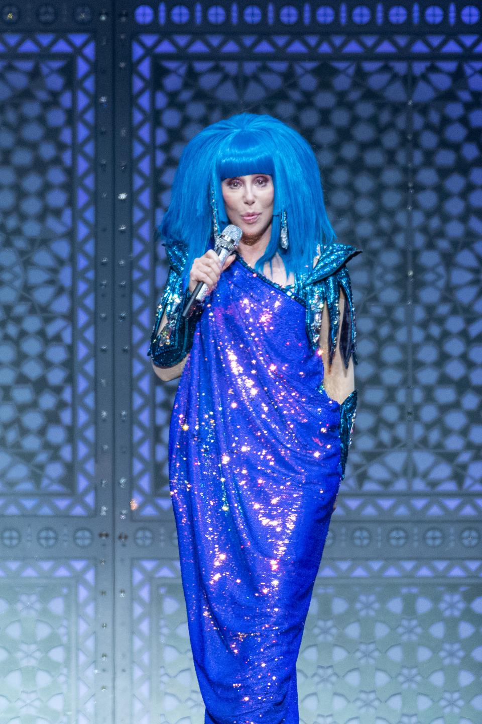 GLASGOW, SCOTLAND – OCTOBER 28: Cher performs on stage at The SSE Hydro on October 28, 2019 in … [+]
