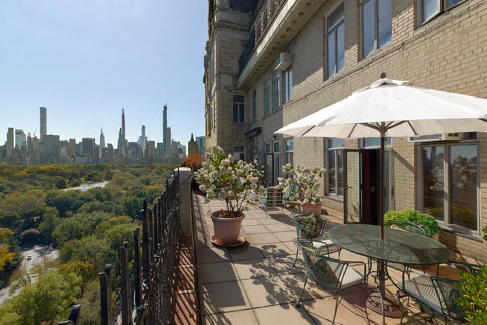 Located in one of Central Park West’s landmark towers, unit 19E measures 3,300 square feet, with five bedrooms and four full baths. There is also a 600-square-foot terrace with panoramic views of Central Park and the Midtown skyline, described as “the best seat in New York City to watch the fireworks on New Year’s Eve.”