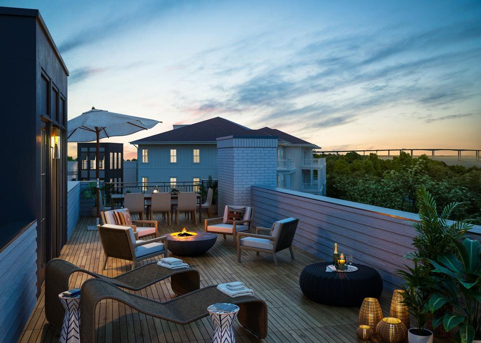 A rooftop terrace at the Waterfront development in Daniel Island takes in a view of the nearby Wando … [+]