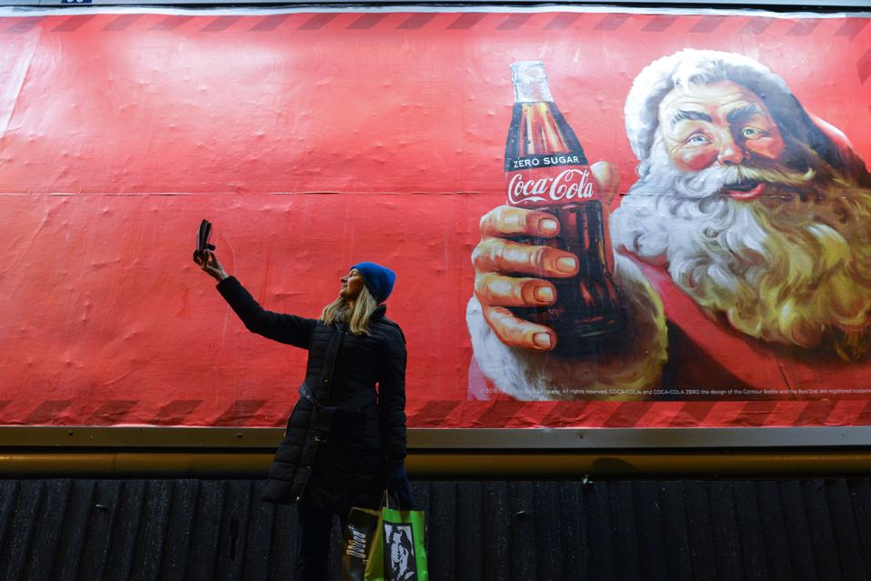 A lady takes a selfie in fron of Coca Cola Christmas ad in Dublin. On Friday, December 21, 2018, in … [+]