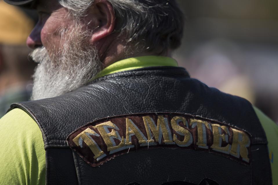 A man wearing a Teamsters jacket attends a rally with retired members of the International Brotherhood of Teamsters and their supporters outside the Capitol in Washington, D.C., U.S., on Thursday, April 14, 2016. The demonstrators are protesting a