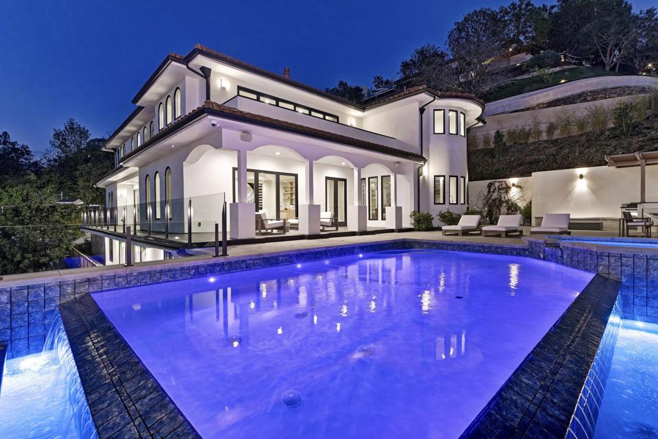 Perched high on a ridge with sweeping mountain and city views, the Sherman Oaks property is unique for the area because of its scale and usable space, according to listing agent Anna Marie Simpliciano of Hilton & Hyland. Sitting on three-quarters of an acre, the estate includes a Mediterranean-inspired contemporary house of about 8,500 square feet, a spectacular infinity-edge swimming pool, an outdoor kitchen and a large grassy field.