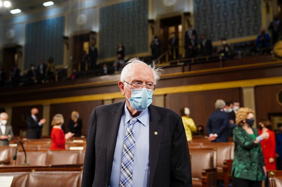 WASHINGTON, DC – APRIL 28: Sen. Bernie Sanders (I-VT) arrives before President Joe Biden addresses a … [+]