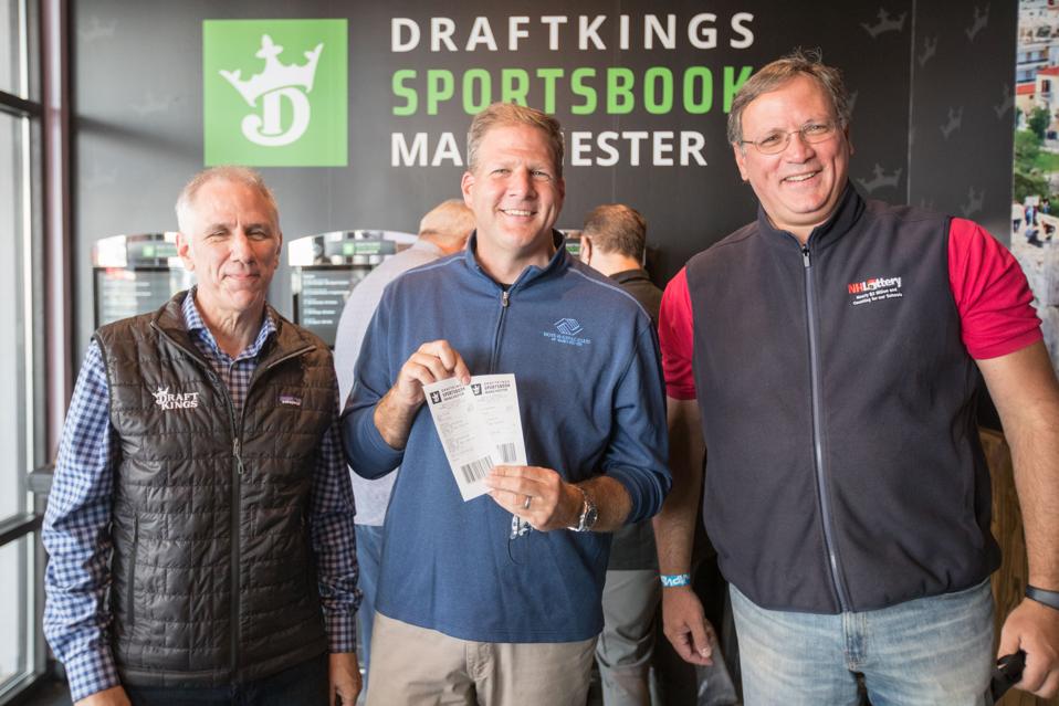 MANCHESTER, NH – SEPTEMBER 13: Tim Dent, chief compliance officer at DraftKings, from left, New … [+]