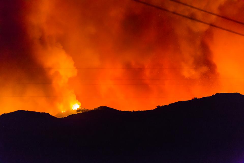 Night long exposure photograph of the Santa Clarita wildfire in CA. The Santa Clarita Valley … [+]