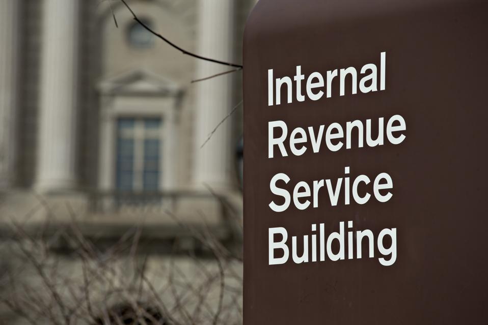 Signage for the Internal Revenue Service (IRS) stands outside the IRS headquarters building in … [+]