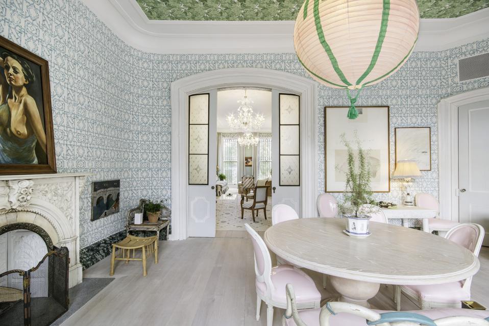The more formal of the two dining rooms displays the lighthearted decor executed by Julian … [+]