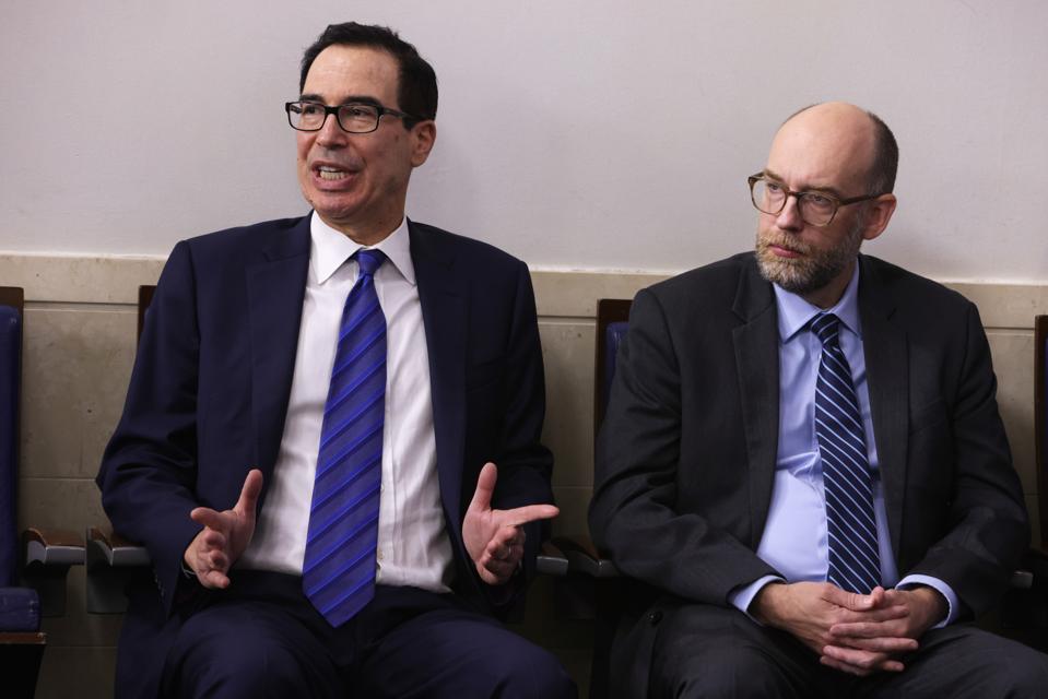 WASHINGTON, DC – AUGUST 10: U.S. Treasury Secretary Steven Mnuchin speaks as White House Budget … [+]