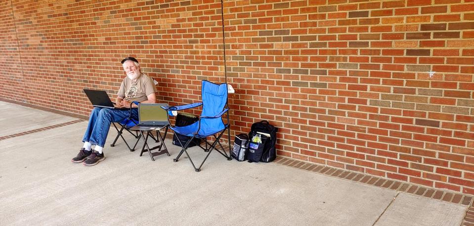 April 30 was one of the most exciting days in my blogging career. My partner and I were touring the country in our RV. Our carefully laid plans were disrupted by Covid-19. We ended up spending a month sheltering in place at Lake Lurleen State Park near Tuscaloosa AL. The only problem was that our hotspots did not work there. So we kind of set up at an out of the way spot in a mall. It ended up almost like commuting to the office.