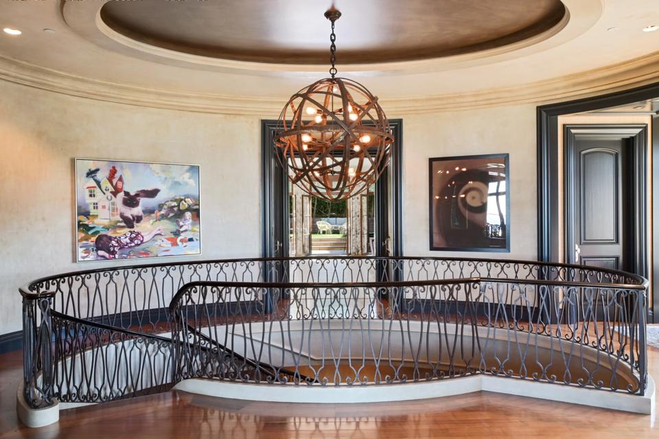 Despite being young, however, the space is stocked with character. Its features include hardwood, marble and limestone floors, a three-level serpentine staircase and a library with paneled-walls and coffered ceilings. Throughout the home are 14 sets of French doors.