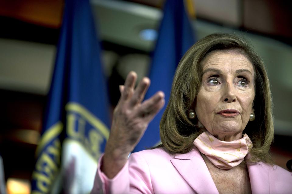 WASHINGTON, DC – AUGUST 22: U.S. Speaker of the House Nancy Pelosi (D-CA) speaks to reporters at … [+]