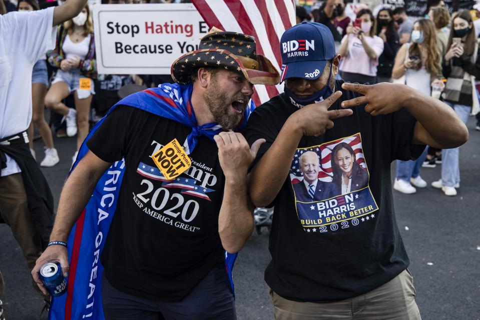 WASHINGTON, DC – NOVEMBER 08: A supporter of President Donald Trump (L) and a supporter of former … [+]