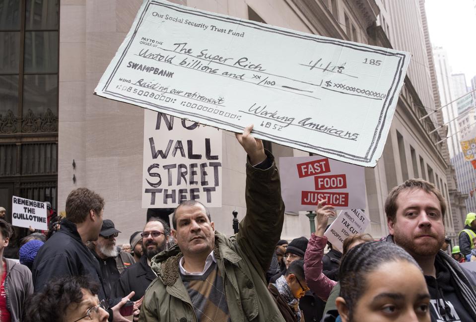NEW YORK, NY – DECEMBER 19: Protestors demonstrate against the 2017 tax bill about to be passed by a … [+]