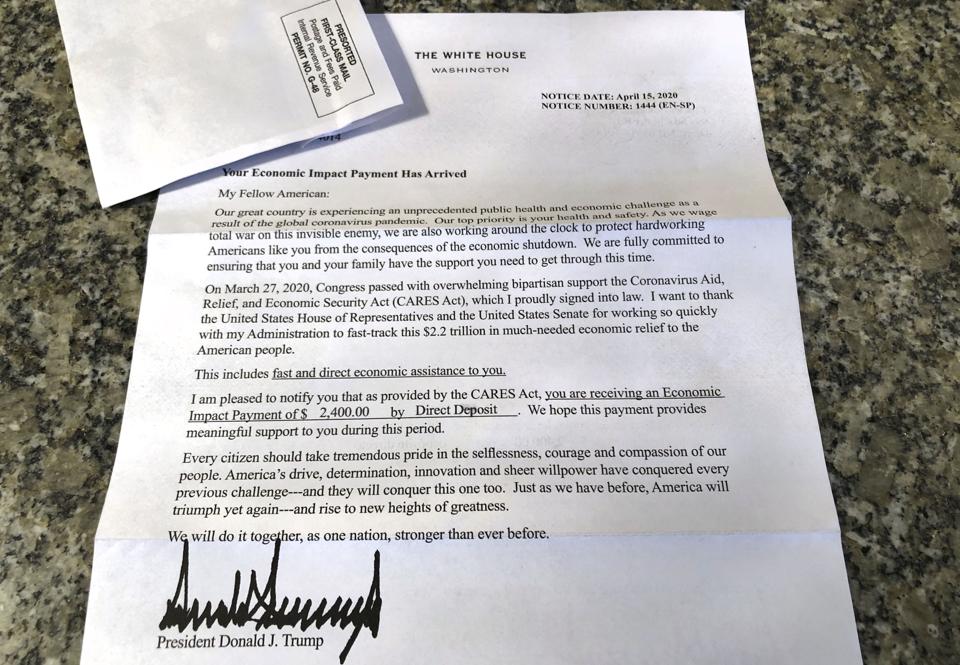 A letter from the Internal Revenue Service, signed by President Trump, notifies a family via U.S. … [+]