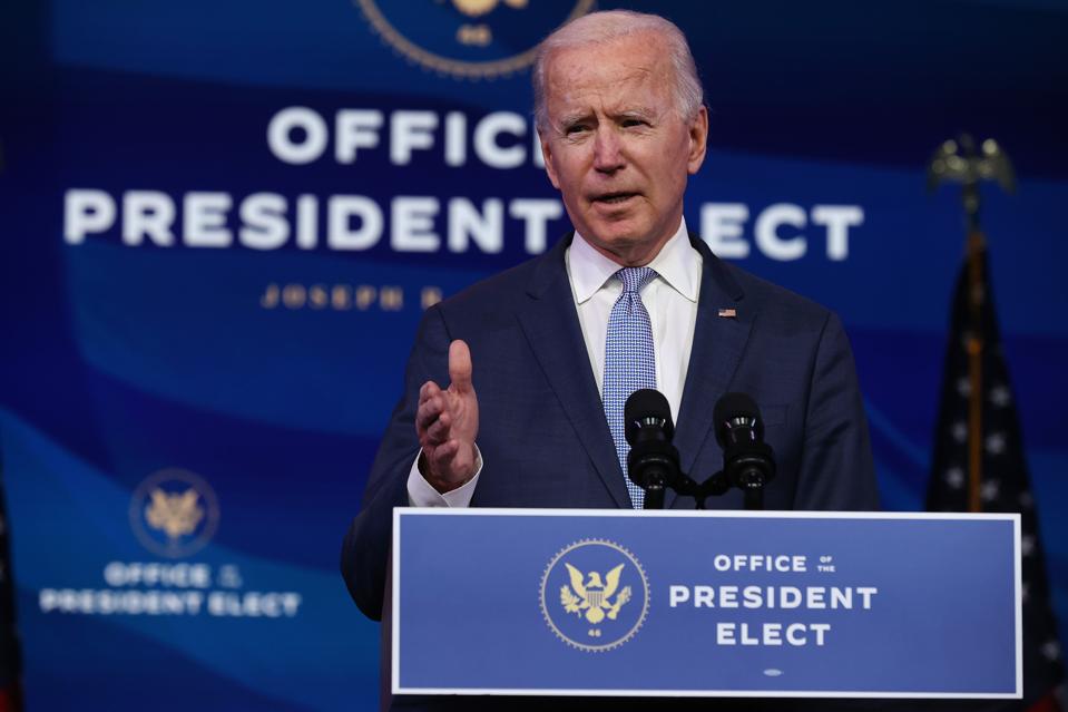 WILMINGTON, DELAWARE – JANUARY 06: U.S. President-elect Joe Biden delivers remarks about the … [+]
