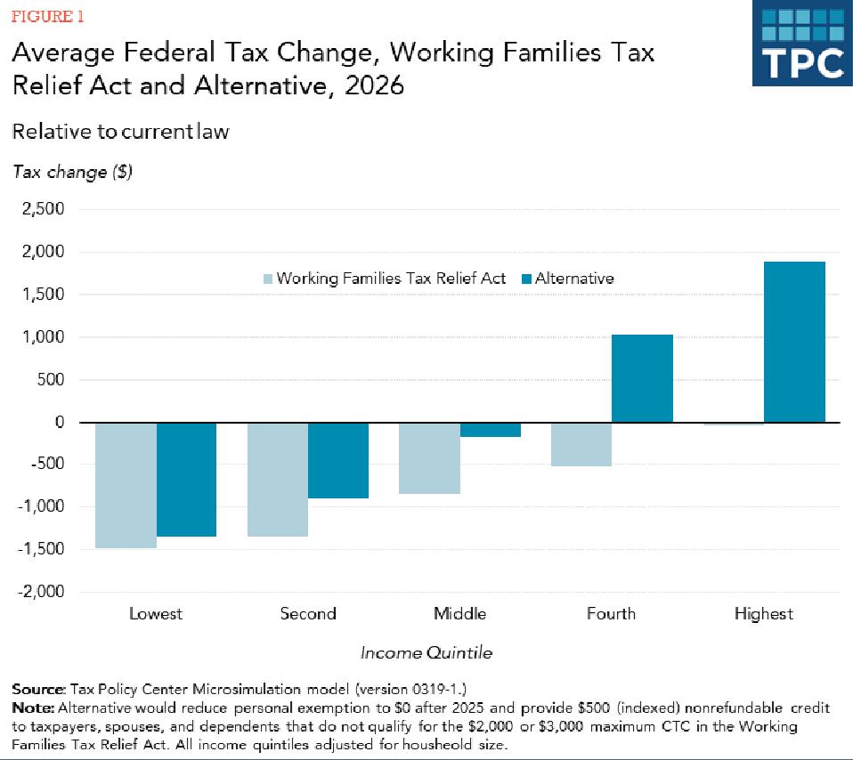 The WFTRA is much lauded for what it’s able to do. But adopting the alternative would keep new benefits focused on the lowest income households, reduce the cost of the legislation, and maybe most importantly—avoid kicking the can on what will happen to the personal exemption further down the road.