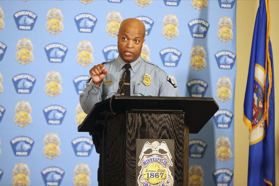 Minneapolis Police Chief Medaria Arradondo addresses the media, Wednesday, June 10, 2020 in … [+]